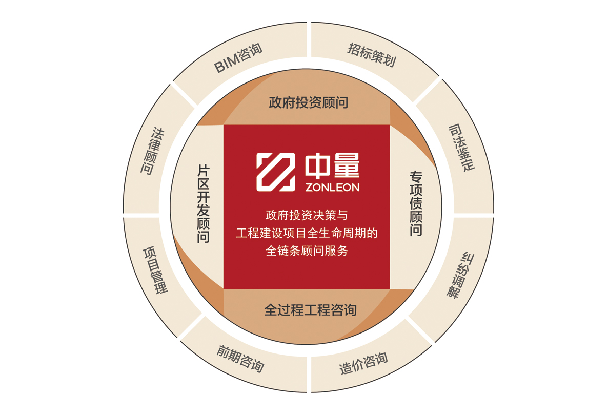 中量是一家综合型咨询公司,开展政企顾问、建设项目决策咨询、造价+法务咨询、司法鉴定、纠纷调解、全过程咨询(前期策划、项目管理、工程咨询、招标策划、招标采购咨询、设计、设计管理及优化、监理、BIM咨询、工程造价)、项目监督、尽职调查、项目利润审计、PPP咨询、工程总承包(EPC)顾问、建设项目后评价、绩效评价、专项债咨询、双碳咨询、城市体检、海绵城市建设评估、调概咨询、房地产纾困、标准制定、城市更新咨询与评估、工改咨询、乡村建设项目策划申报等多元化业务,是广东省工程造价协会第二、第三届会长单位,广东省首批全过程工程咨询试点单位之一,广州市建筑业链长制工作首批示范企业。